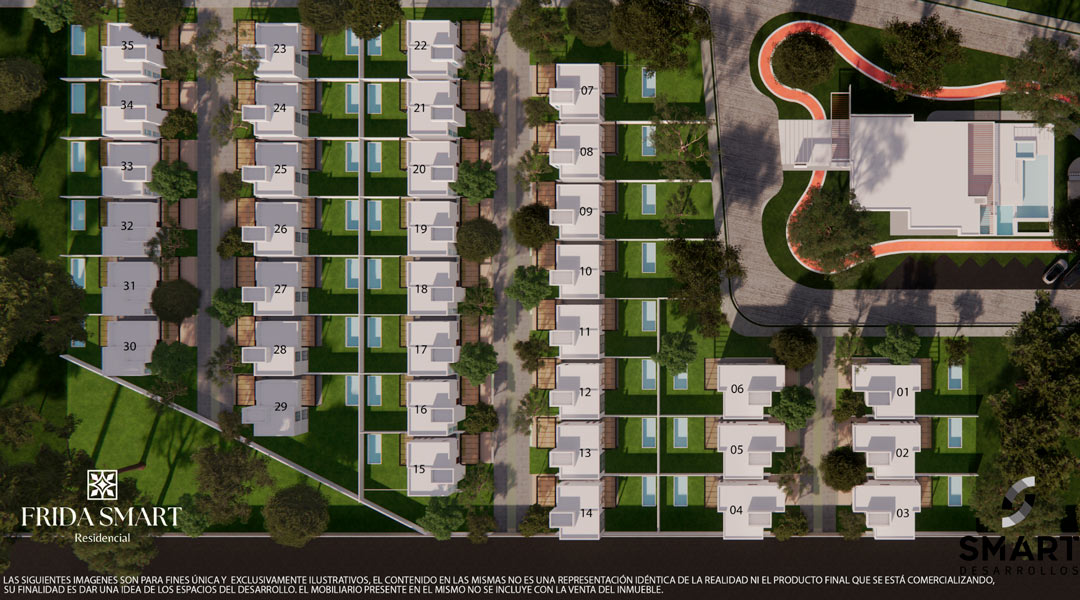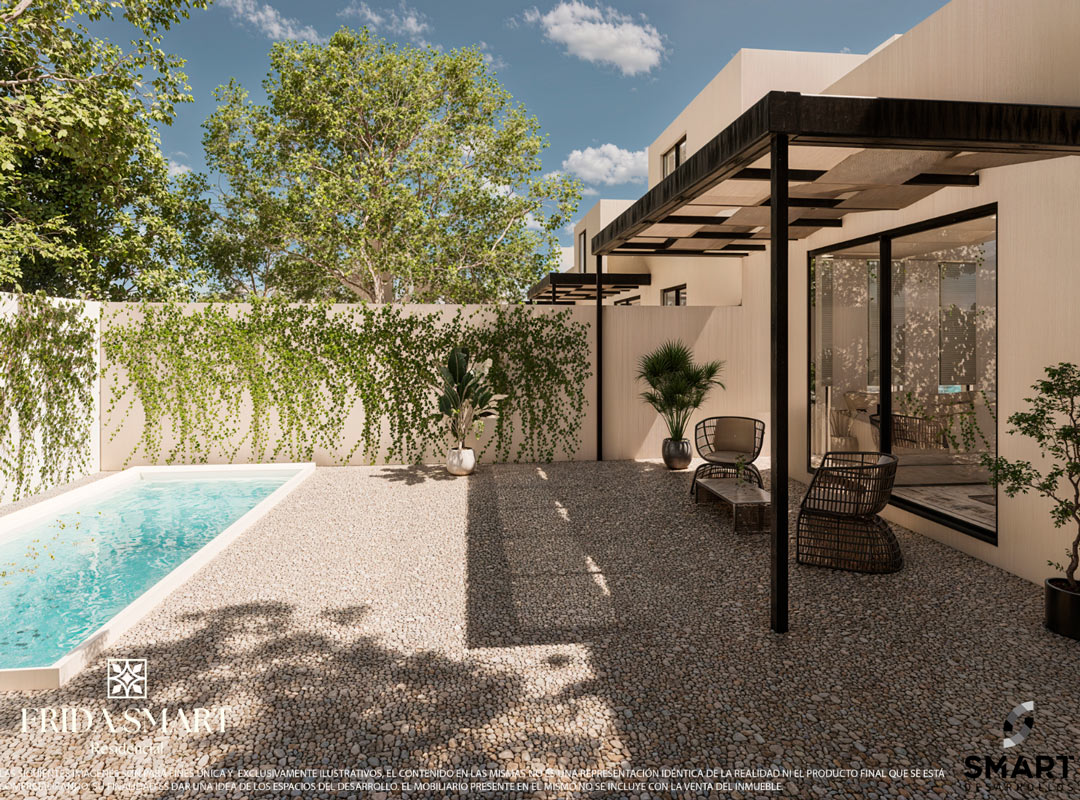 En Frida Smart Residencial cada hogar se adapta a tus necesidades. Con opciones de casas de dos plantas con dos, tres o cuatro recámaras, con áreas para sala, comedor, cocina y baño. También cuentan con una piscina de 2.00 x 4.60 metros, con una profundidad máxima de 1.30 m y una zona de chapoteadero de 0.50 m de profundidad, además de un borde tipo infinity.